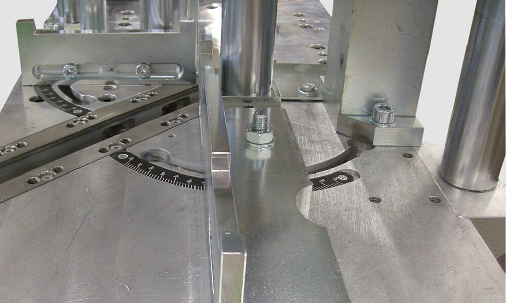 Регулируемите ограничителни ножове осигуряват идеални резултати при заваряване на бели и цветни профили. Регулируемите ограничителни релси (диапазон на регулиране от 30° до 180°) позволяват заваряване ъгъл (в зависимост от ширината на профила).