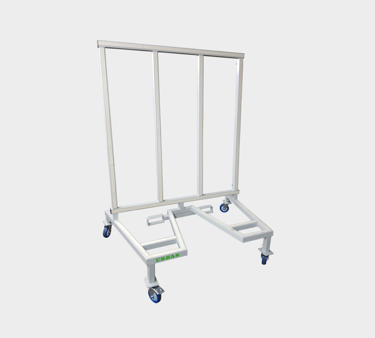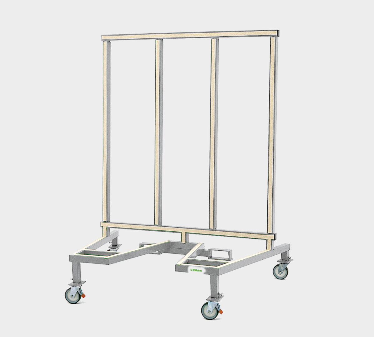 Plug-in castor wheels with fork lift access and ready for truck transport