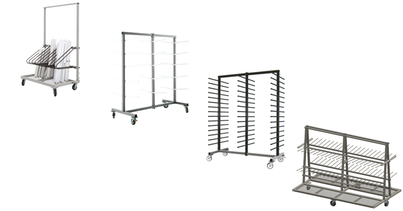 - All profile trolleys equipped with 4 flexible and smooth running castor wheels (2 with locking brake)