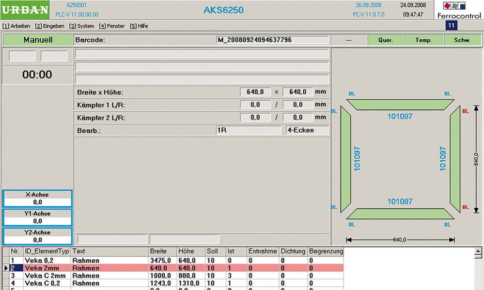 Всички важни параметри и информация, като например температура на нагревателната плоча, подложки, обозначения на профили и др., се показват на ясно подреден дисплей, който може да бъде персонализиран по заявка.