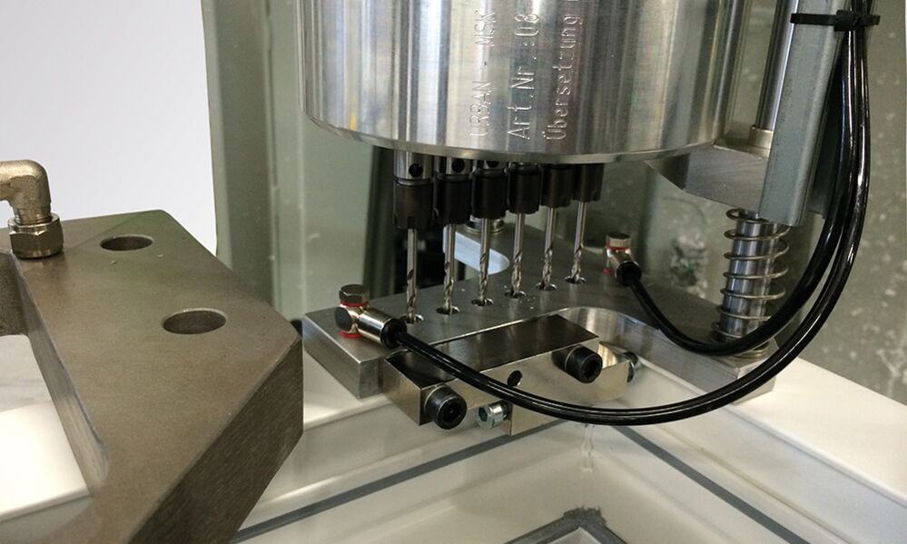 Пробивния агрегат за отворите за пантите и ножици (опция) може лесно да се интегрира в процеса.